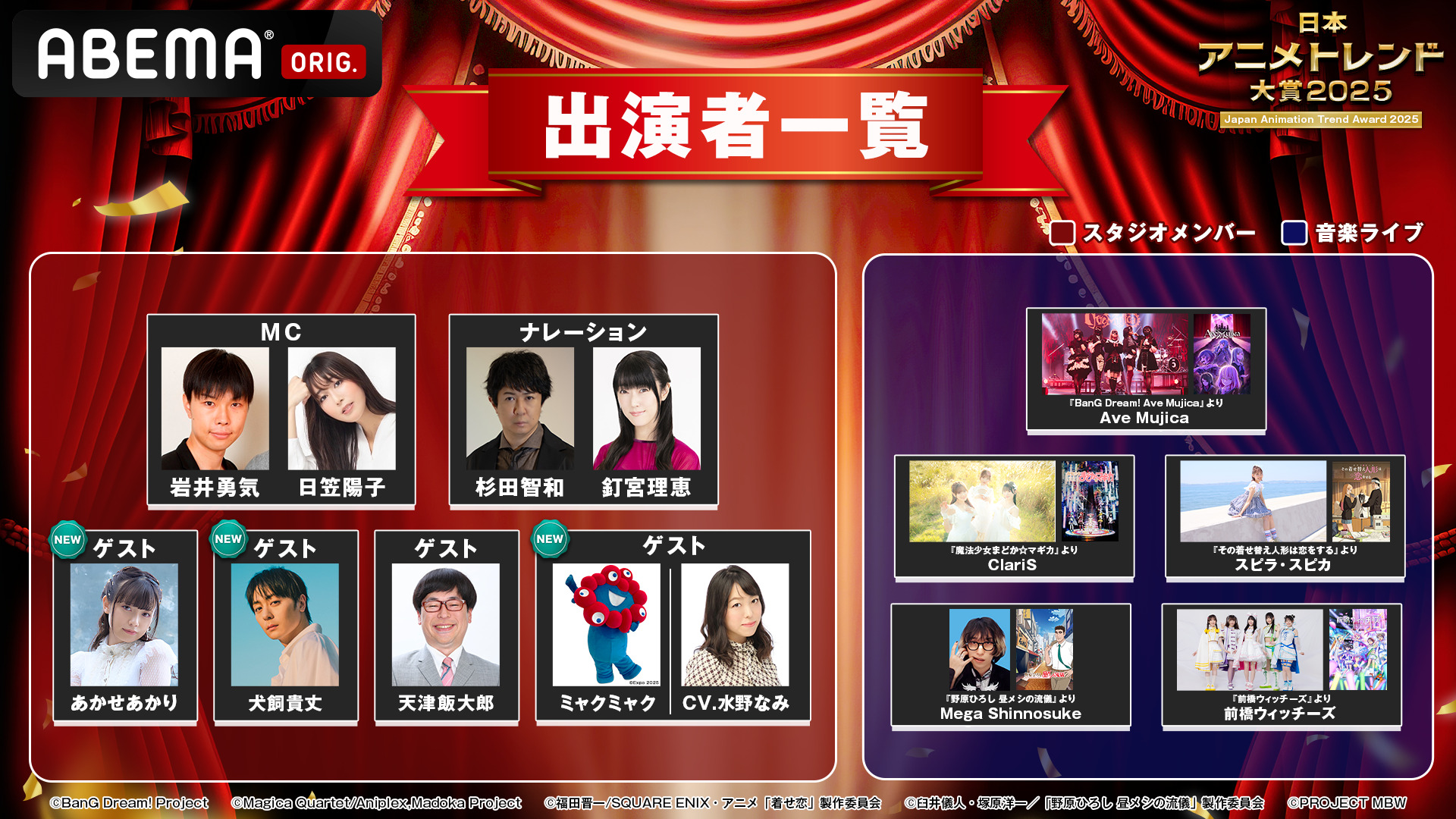 国内最大級のアニメアワード『日本アニメトレンド大賞2025』あかせあかり・犬飼貴丈・ミャクミャク・水野なみ出演決定!豪華ゲストからの独占コメントをお届け