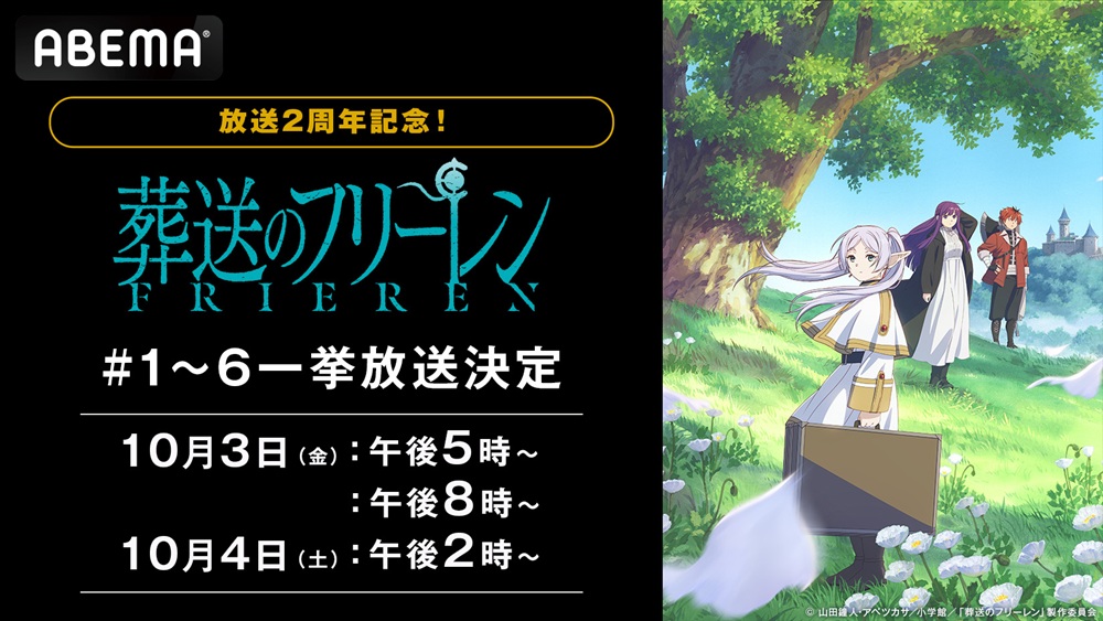 大人気アニメ『葬送のフリーレン』旅立ちからアウラとの戦い、フリーレン一行の絆…「ABEMA」で第3章【絆編】までを11月2日(日)に無料一挙放送!