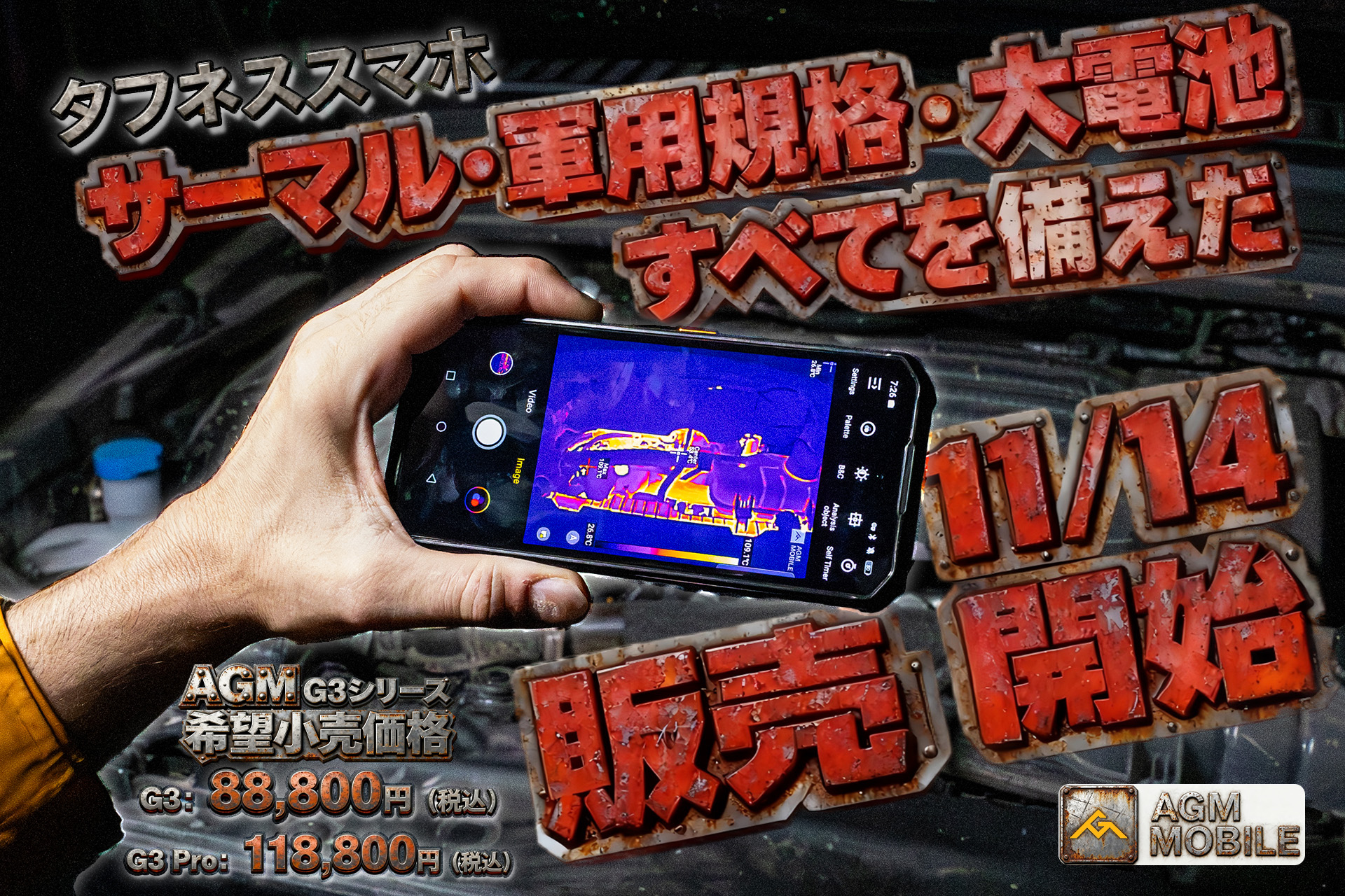 AGM、キャンプ灯内蔵&熱画像対応のラグドスマホ「G3シリーズ」を11/14発売