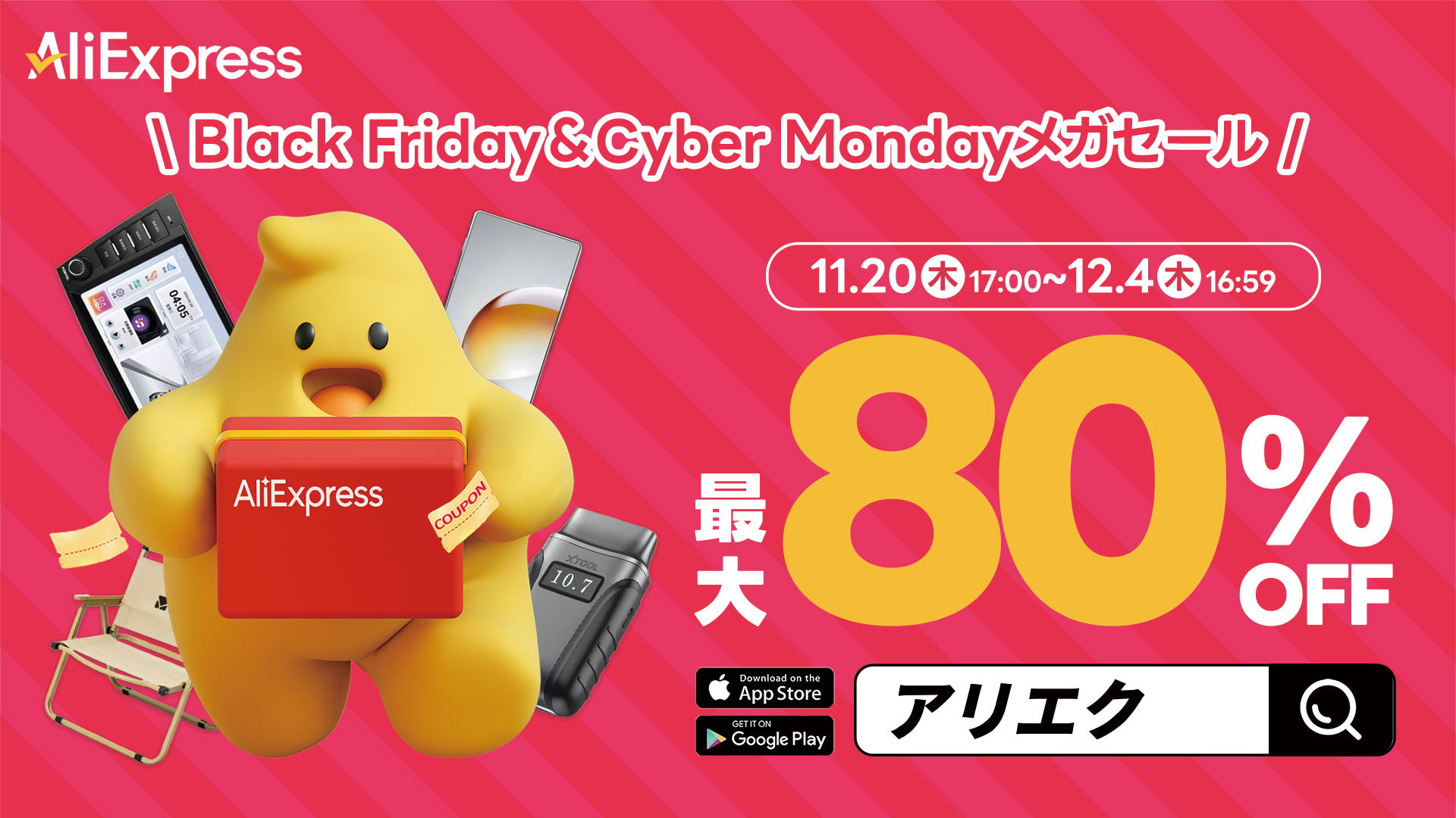 AliExpress(アリエクスプレス)、最大80%OFF「Black Friday & Cyber Mondayメガセール」開催!