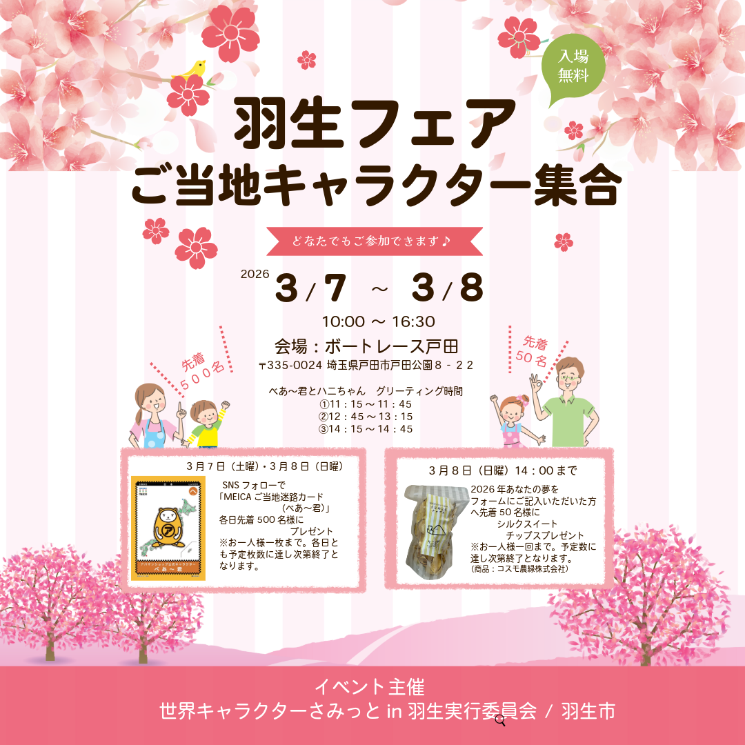 ご当地キャラ大集合イベントに初参加 アパマンショップ「べあ~君&ハニちゃん」羽生フェアに登場