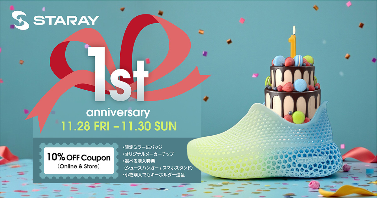 【明日から開催】3Dプリントシューズ STARAY、1周年記念企画を開催【APPLE TREE株式会社】