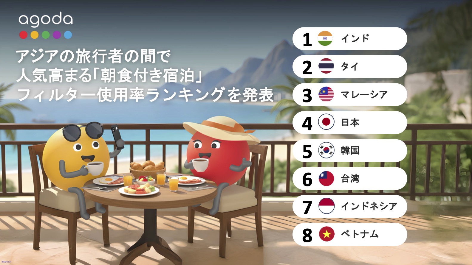 アゴダ調査:「朝食付き」フィルター利用率、日本はアジアで第4位