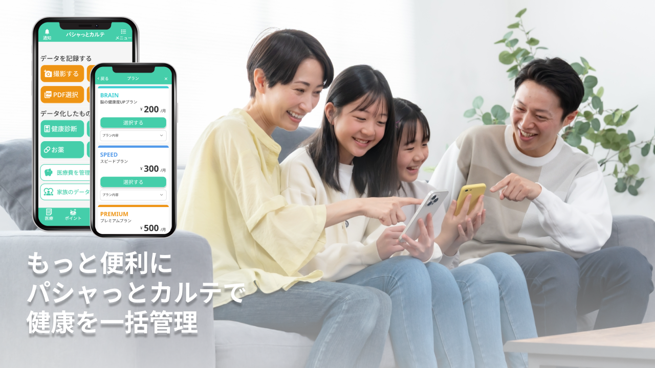 PHRアプリ「パシャっとカルテ」、家族最大4名で使える新プラン登場。データ反映を高速化する「SPEEDプラン」も新設。