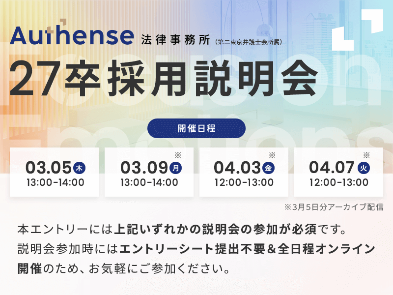 【2026.3.5】Authense法律事務所「27卒向け新卒採用説明会」開催のお知らせ