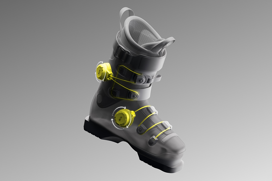 アルペンスキー用デュアルダイヤルBOA(R)フィットシステム。優れたフィットと実証されたパフォーマンス上の優位性。