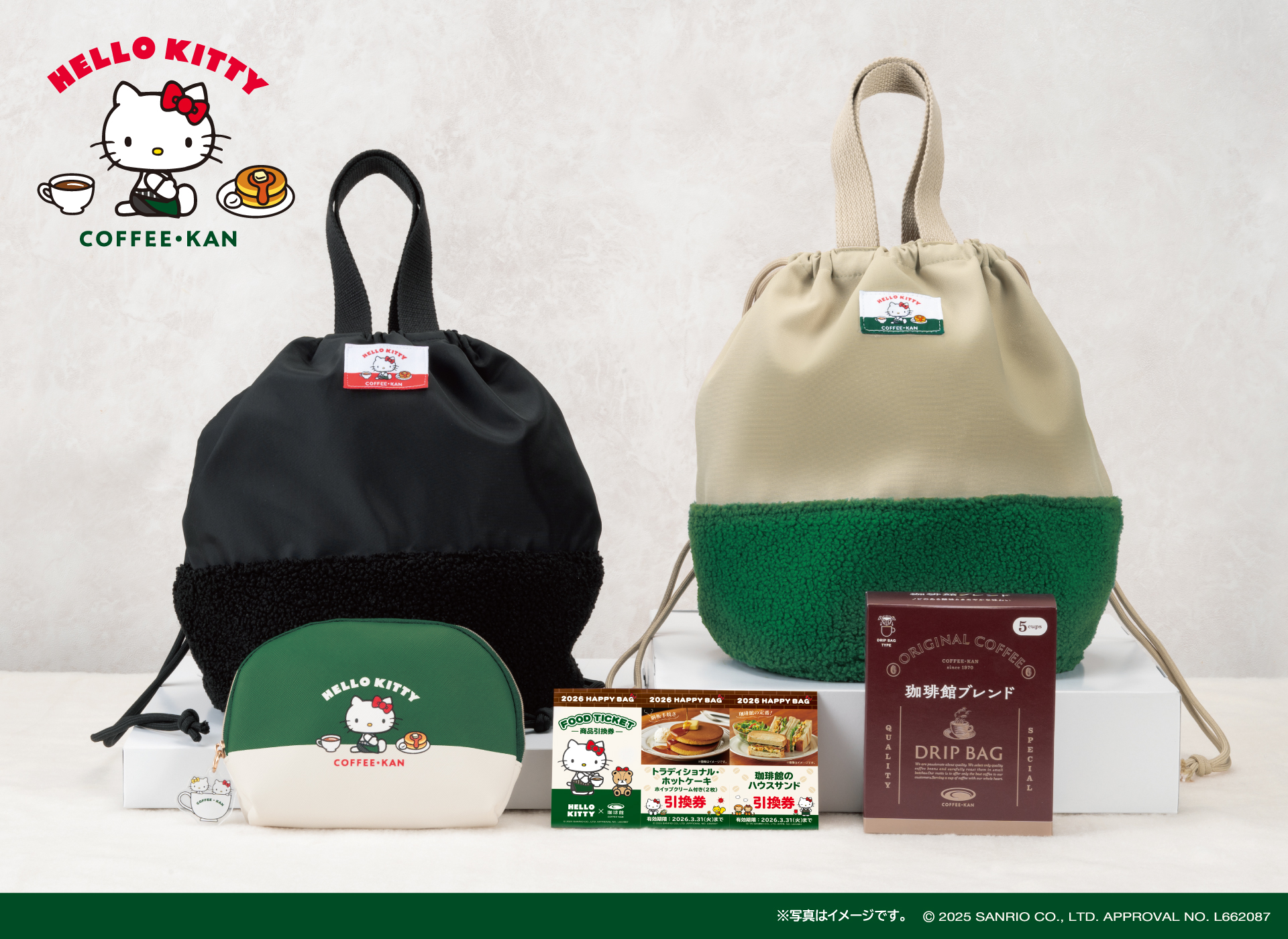1974年誕生の「ハローキティ」と1970年誕生の『珈琲館』が初コラボ デビュー当時のハローキティのデザインがベース!「ハローキティ×珈琲館 ハッピーバッグ2026」を11月13日より予約開始