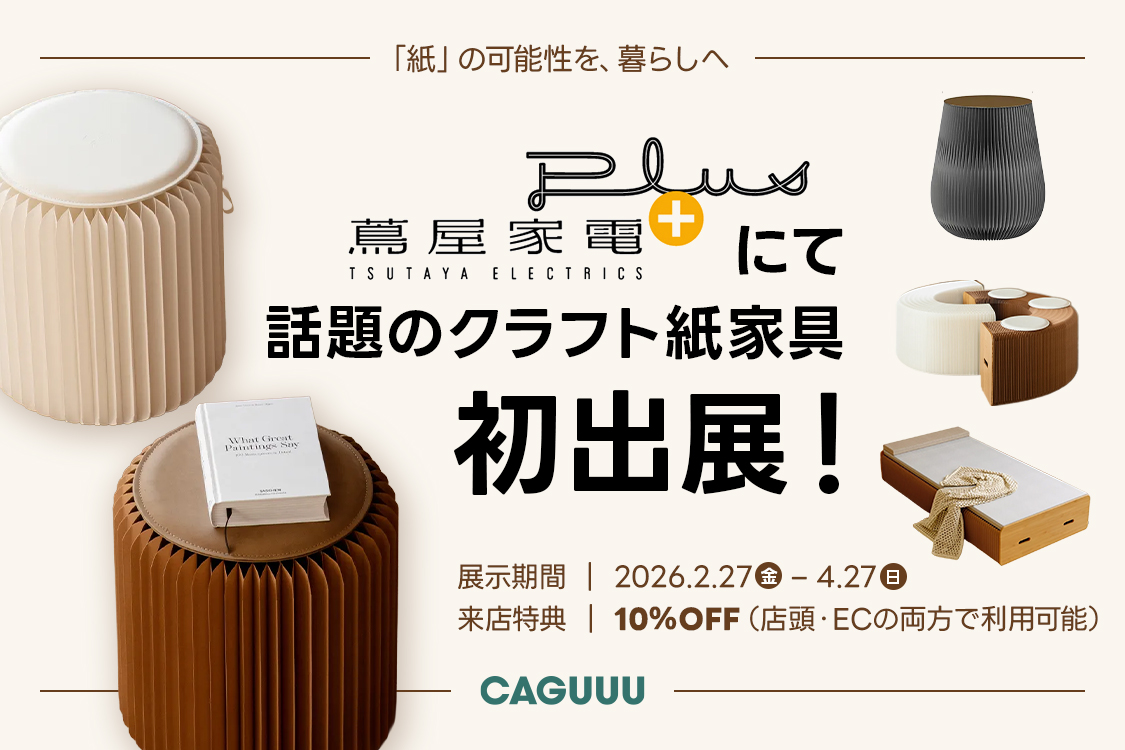 【期間限定リアル出展】“紙”でできた家具?テレビ紹介の話題作、CAGUUUクラフト紙家具が、2/27(金)より「蔦屋家電+」に初登場!