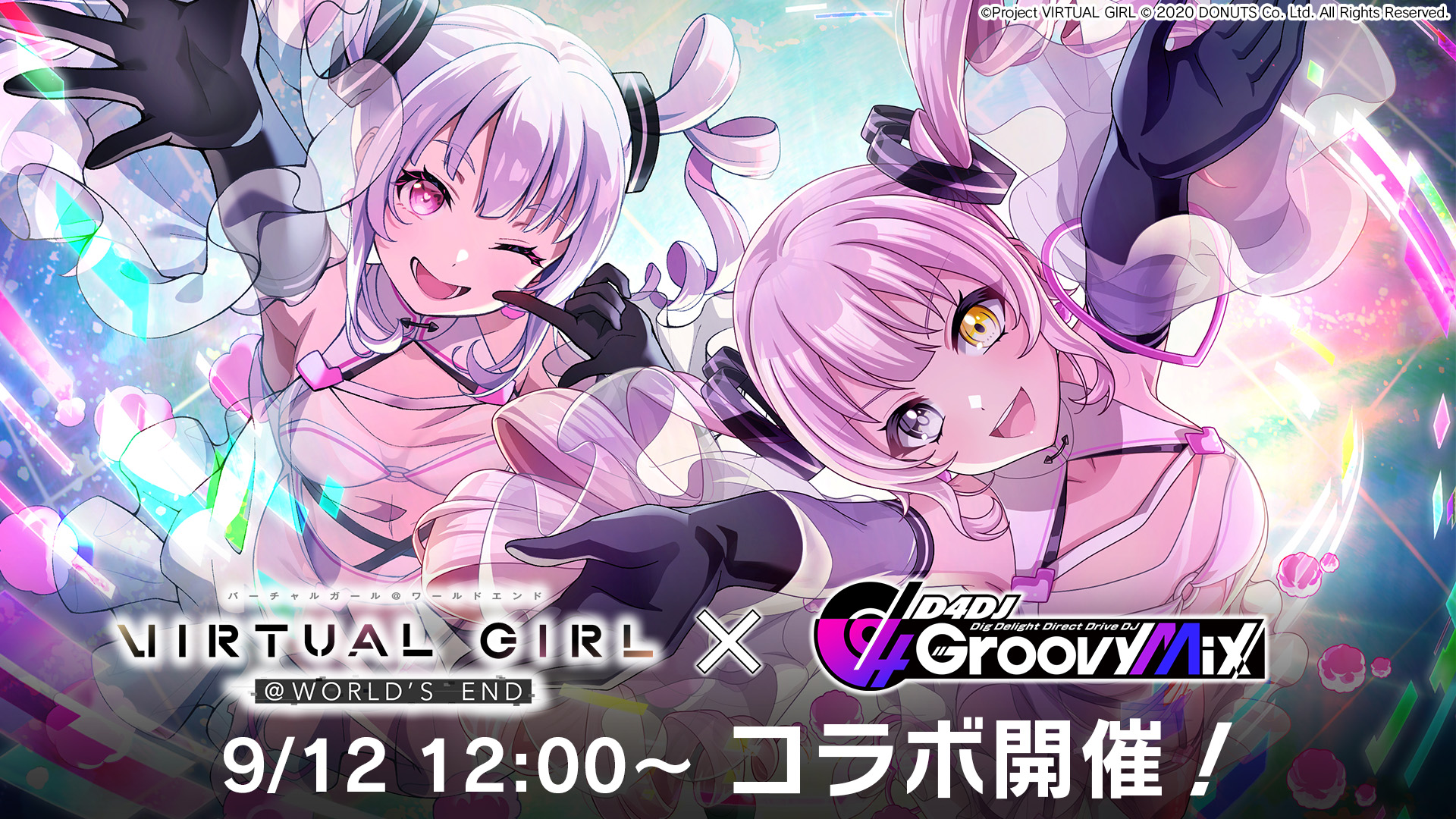 スマートフォン向けリズムゲーム「D4DJ Groovy Mix」、終末系ビジュアルノベルゲーム『VIRTUAL GIRL @ WORLD'S END』とのコラボ特番にて、コラボイベントの詳細を発表!