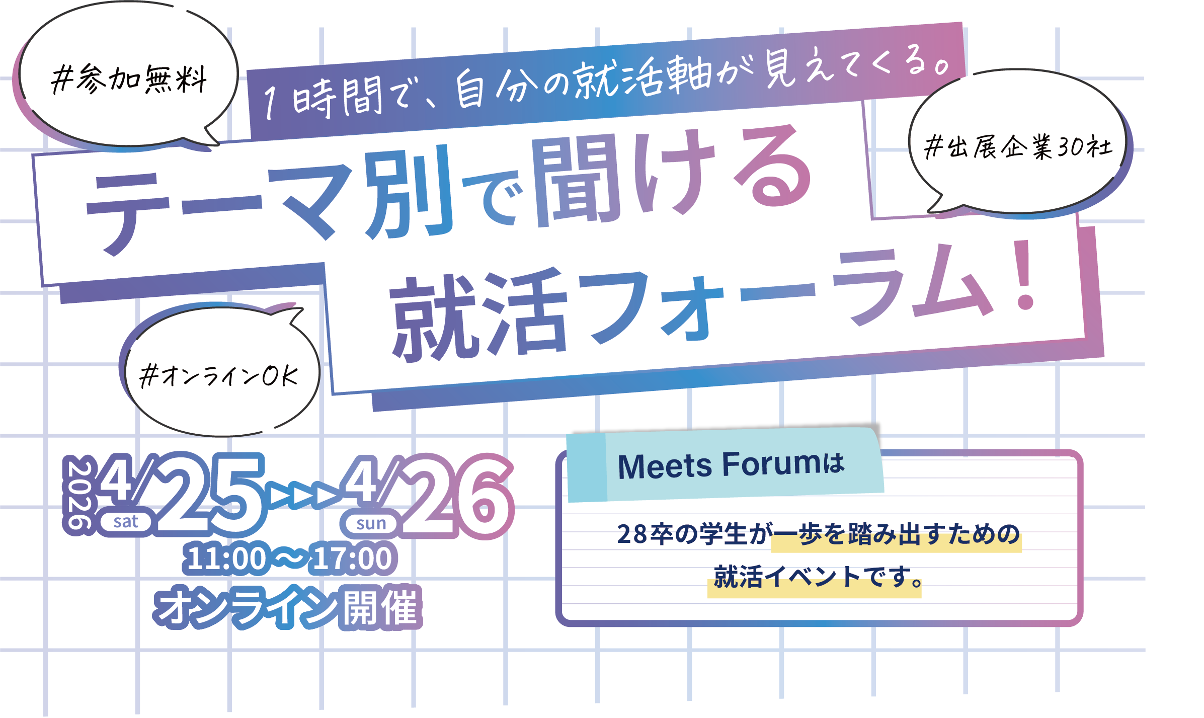 【10年以上の就活支援実績を活かした新たな挑戦】27~29卒向け3年度複合型オンライン合同企業説明会「Meets Forum」を2026年4月25日・26日に開催