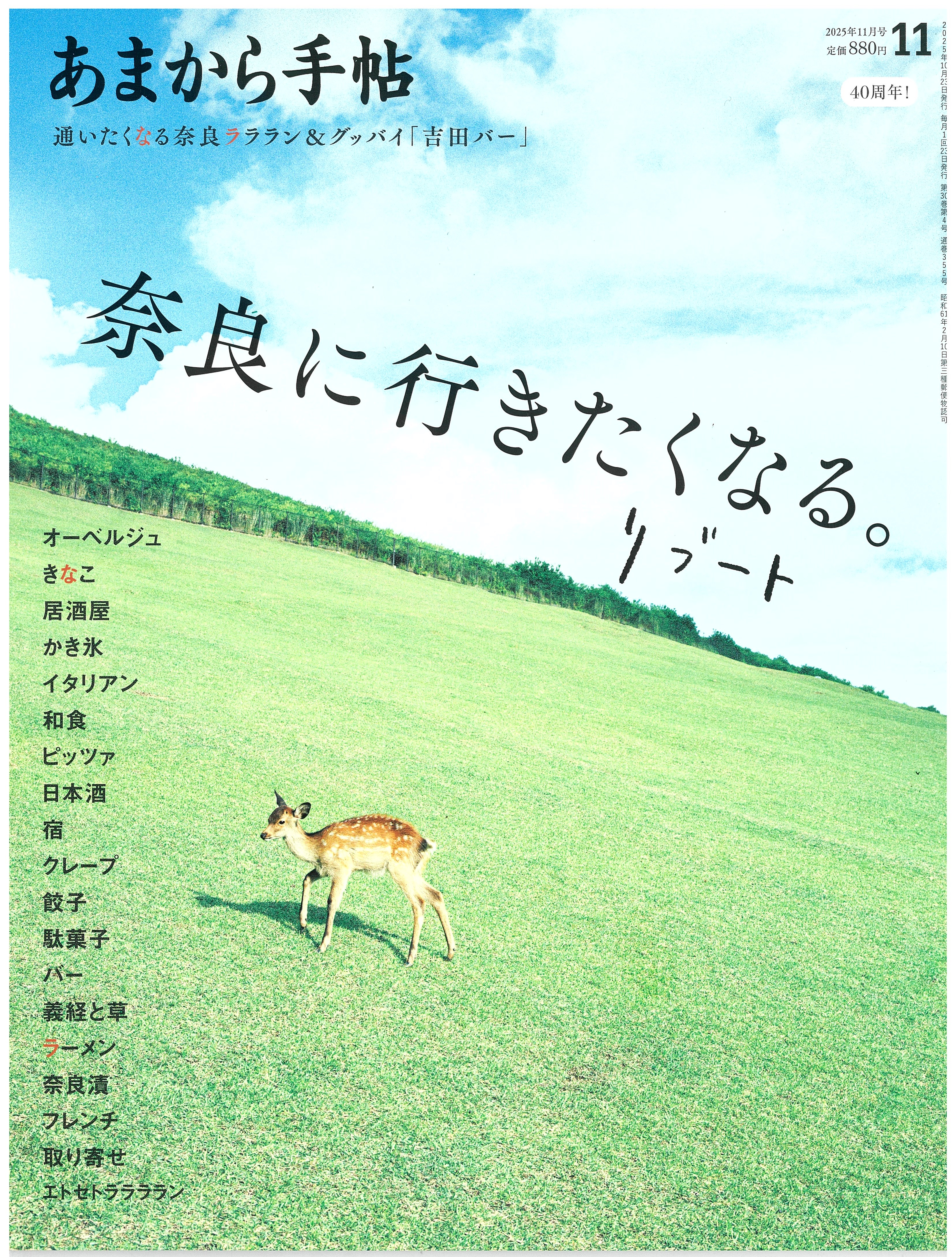 あまから手帖2025年11月号「奈良に行きたくなる。リブート」を10月23日、発売致します。