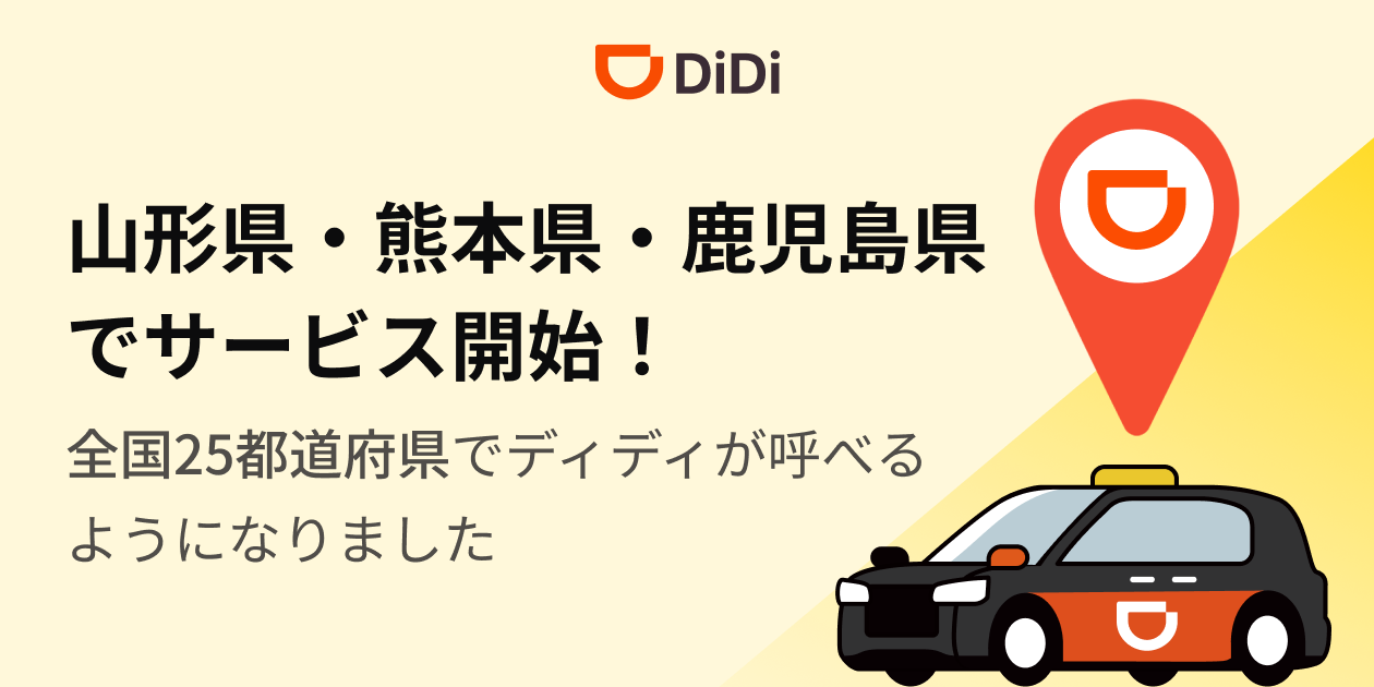 配車アプリ「DiDi」、2025年10月14日より山形県、熊本県、鹿児島県で新たにサービスを開始