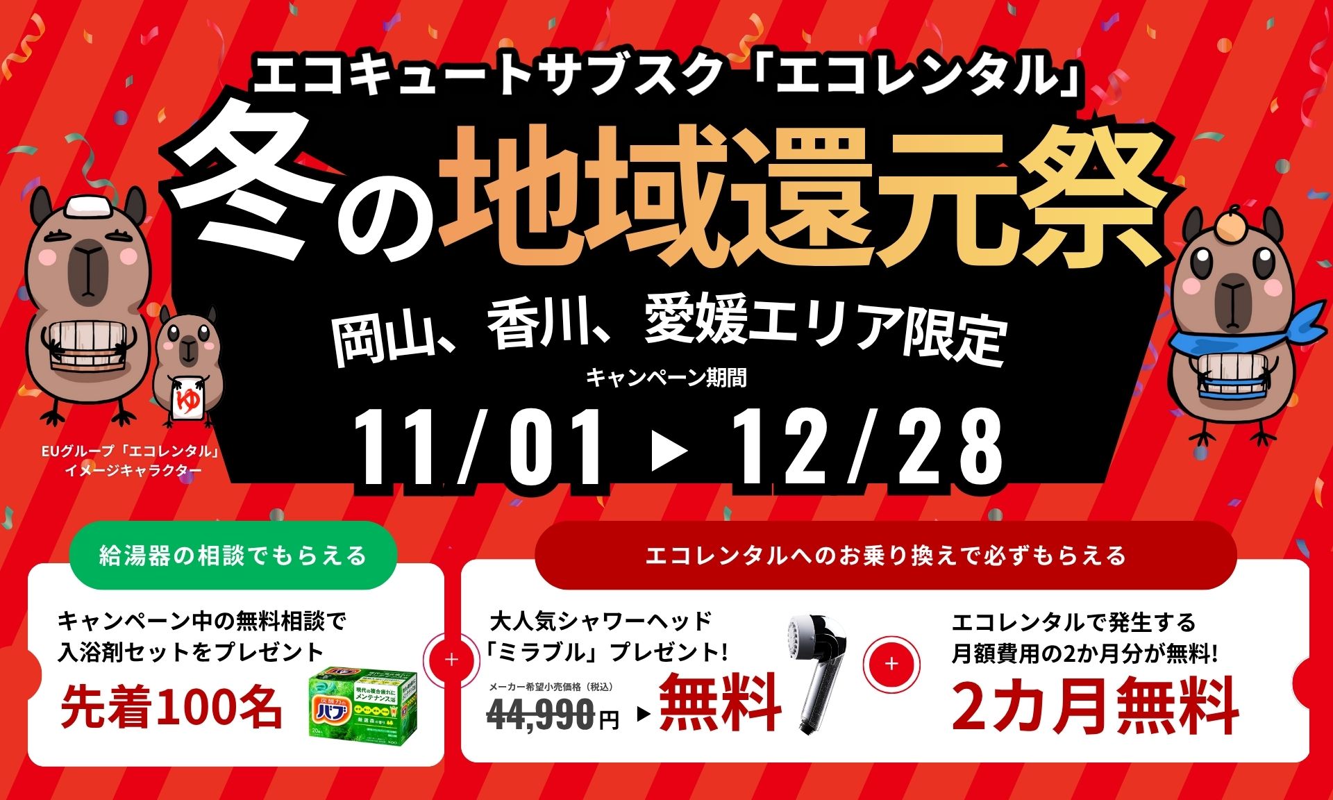 エコキュートのサブスクサービス「エコレンタル」、オトクな冬の地域還元祭キャンペーンを中四国地方で実施