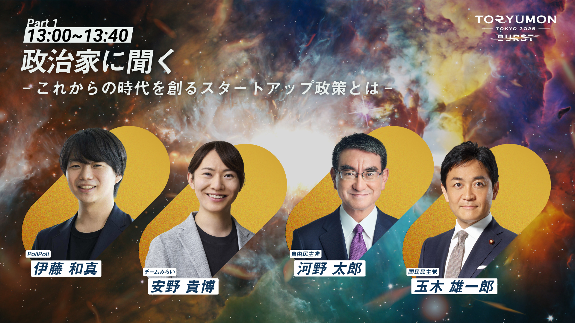 【安野貴博氏・河野太郎氏・玉木雄一郎氏 ご登壇】『TORYUMON TOKYO 2025 BURST』第1部トークセッション 登壇者が決定