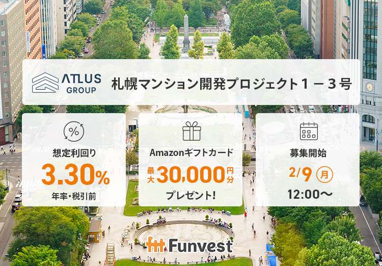 貸付型クラウドファンディング「Funvest」2/9より新ファンド「アトラスグループ 札幌マンション開発プロジェクト1-3号」の募集開始PR TIMES トレンド