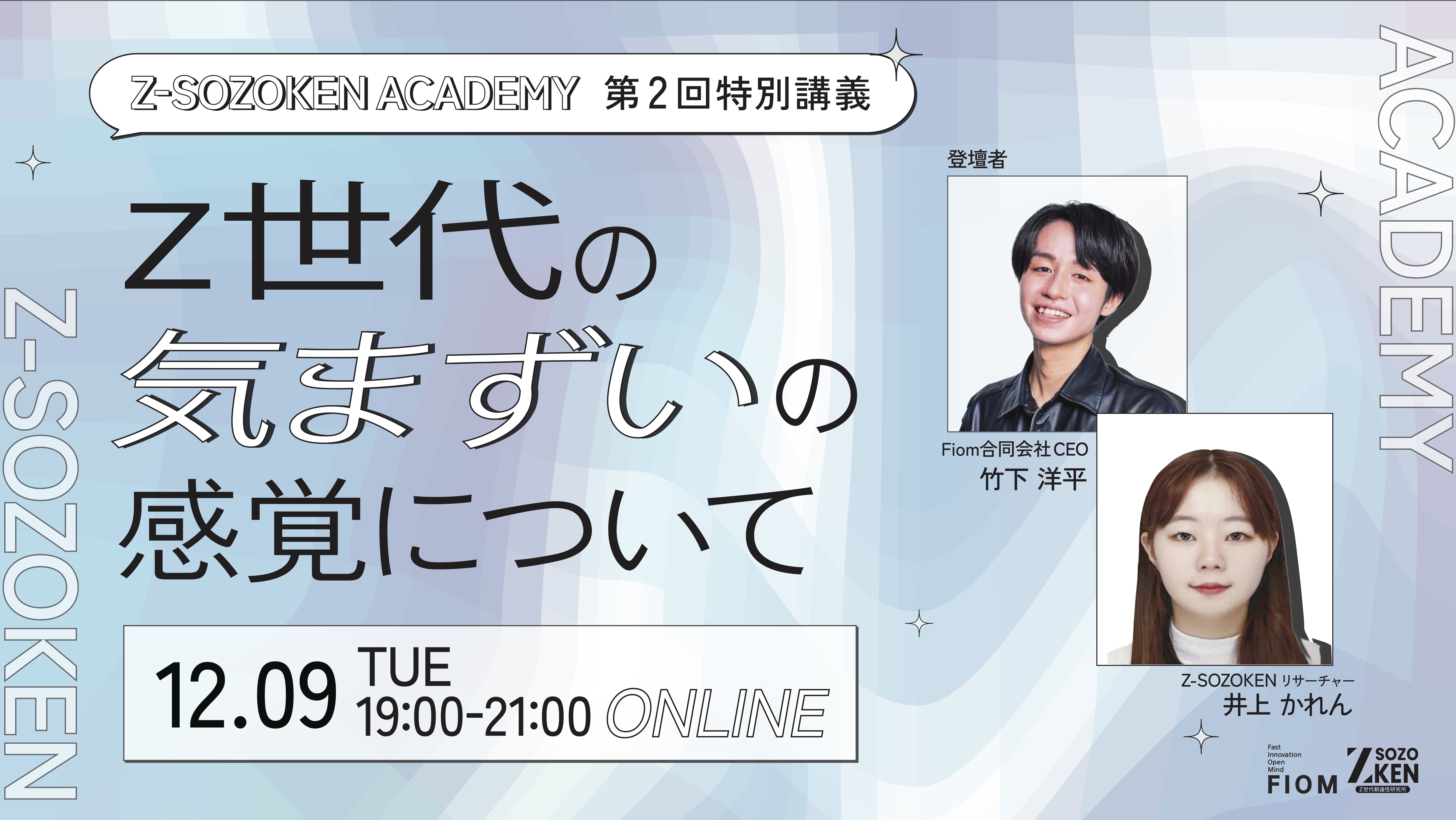 【12/9開催】Z世代の気まずい感覚からZ世代の新たな価値観を読み解く参加型アカデミー「Z-SOZOKEN ADADEMY 第二回特別講座」をZ世代創造性研究所(運営:Fiom)が実施。