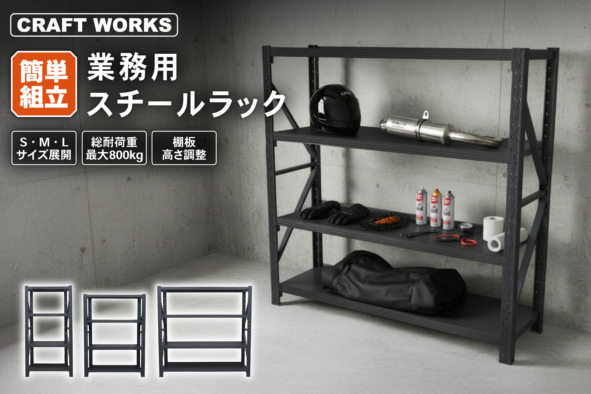 【ガレージ・倉庫に】「業務用スチールラック」販売開始。限られたスペースを“使える収納”へ。組み立て簡単・棚板高さ調整OKでデッドスペースを削減!総耐荷重最大800kg。