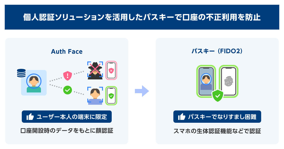 個人認証ソリューションを活用したパスキーで口座の不正利用を防止~利用端末を生体認証で制御し、不正・なりすまし取引を遮断~