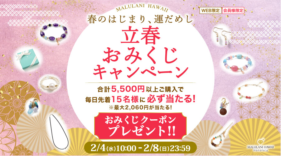 【2月4日は立春】毎日先着15名様に“必ず当たる”おみくじクーポンをプレゼント!(会員様限定)|ハワイ発パワーストーンブランド「マルラニハワイ」