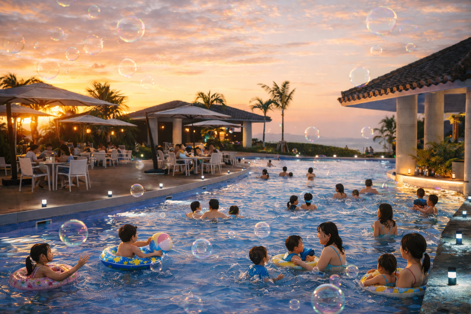 【オリエンタルホテル 沖縄リゾート&スパ】ガーデンプールをしゃぼん玉で彩る「やんばるdeしゃぼんナイト」を開催