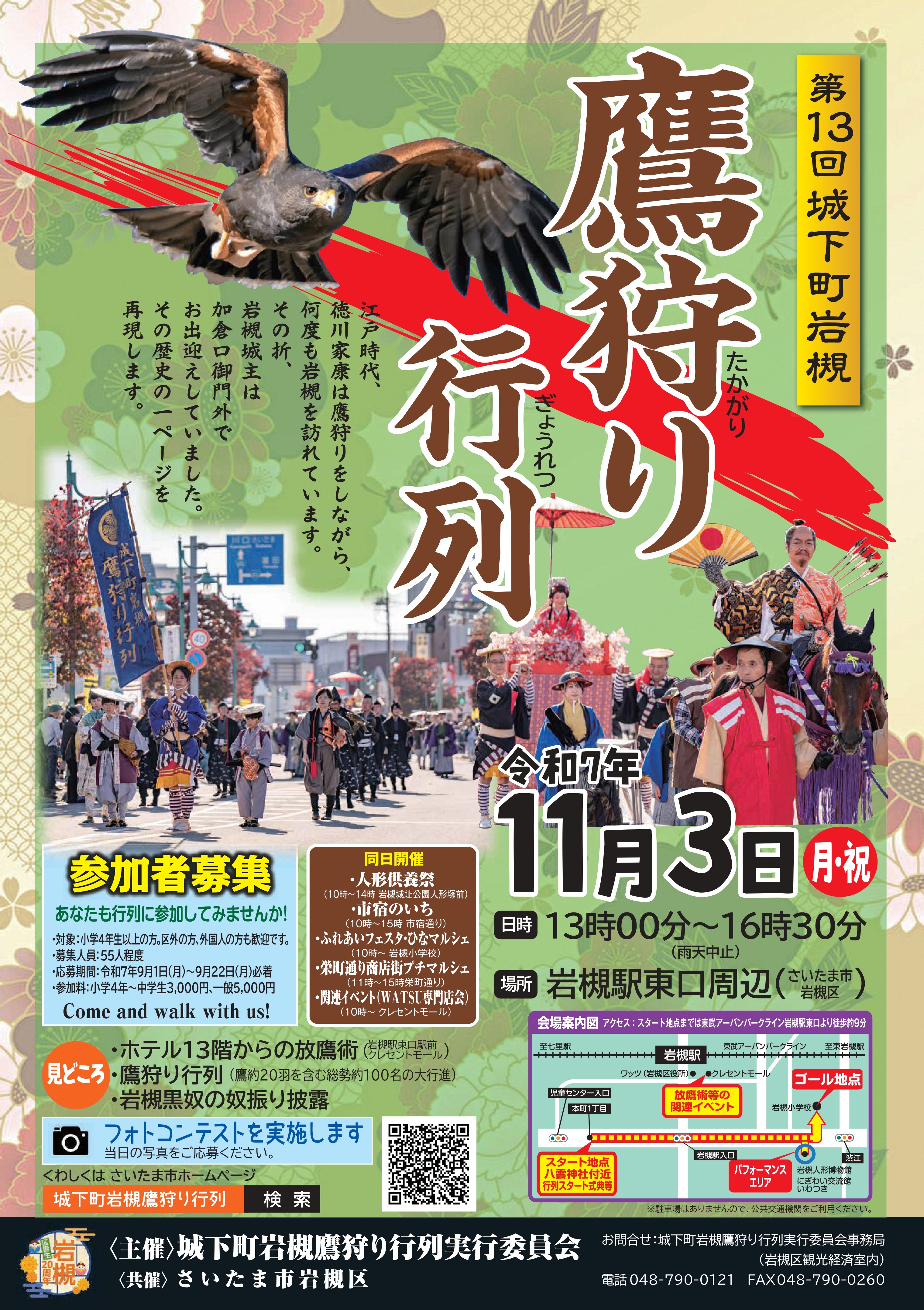 【取材案内】城下町岩槻の一大イベント!「第13回 城下町岩槻鷹狩り行列」を開催!同日には豊富なイベントが目白押し/2025年11月3日(月祝)