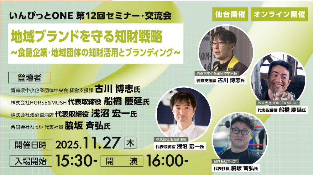 いんぴっとONE 第12回セミナー・交流会 「地域ブランドを守る知財戦略~食品企業・地域団体の知財活用とブランディング~」