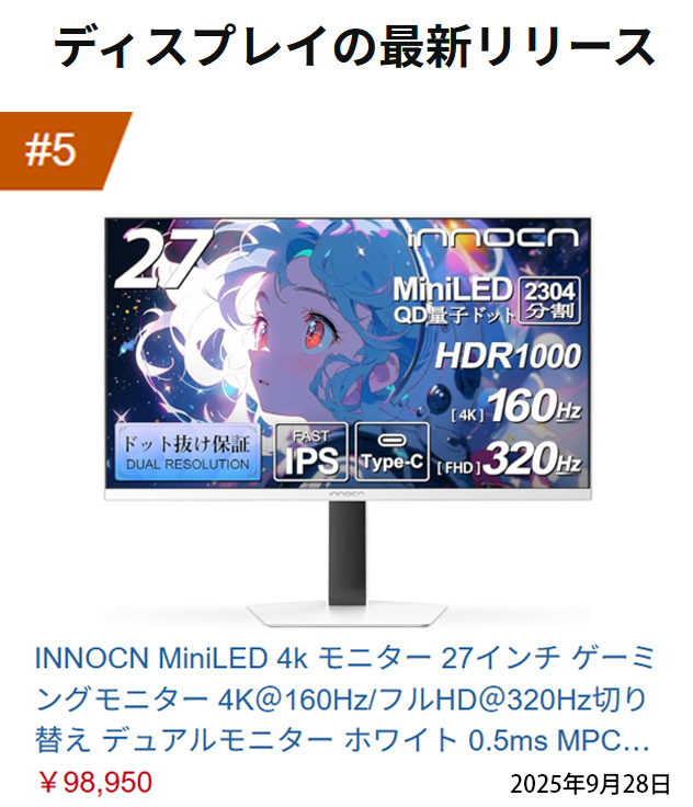 【Amazon秋のプライム感謝祭 あと2日】eスポーツの黄金サイズ24.5型QDMiniLEDモニター「INNOCN 25M2S」が価格攻勢!