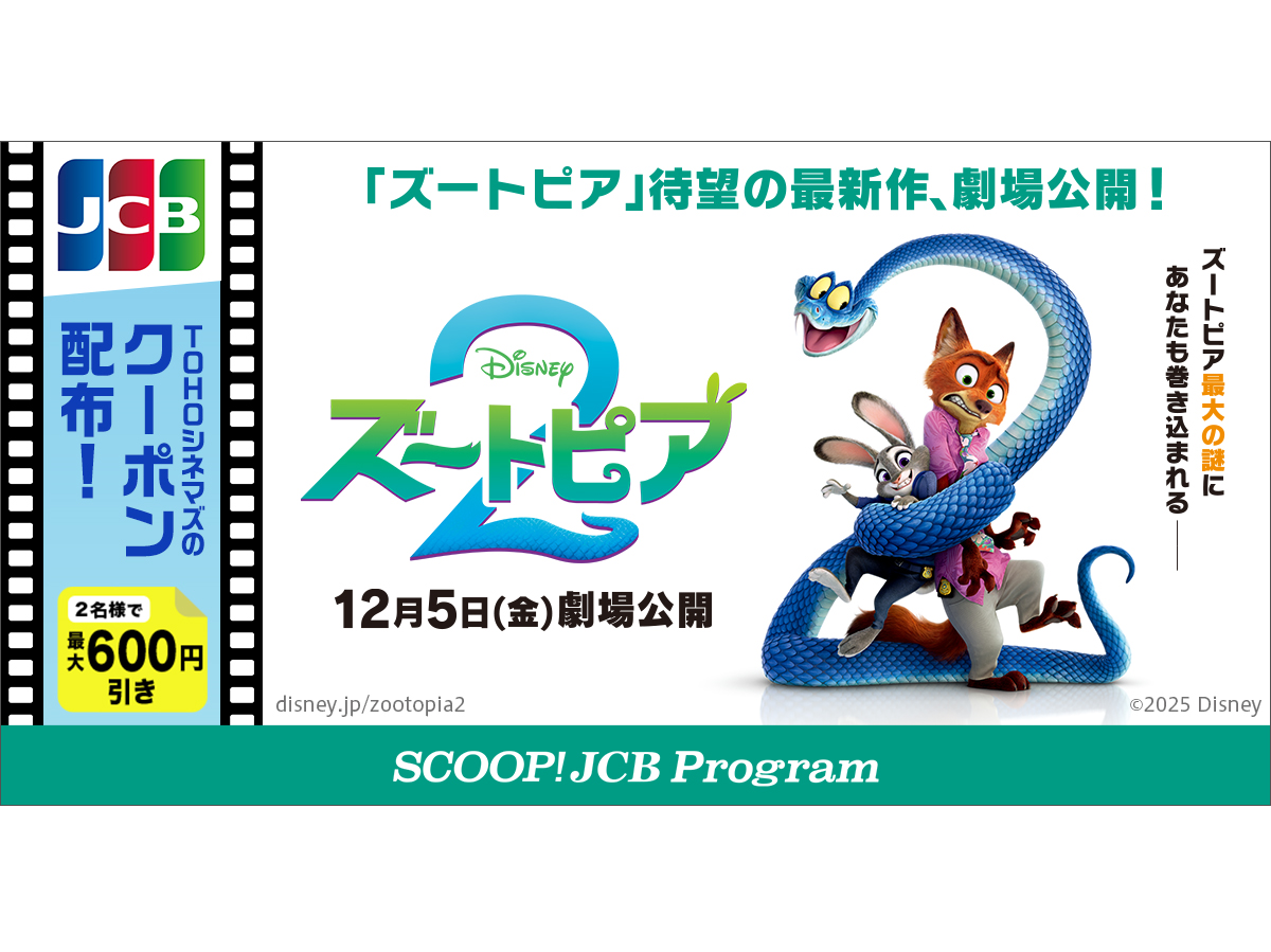 JCB、ディズニー映画『ズートピア2』のTOHOシネマズで使えるクーポン配布!
