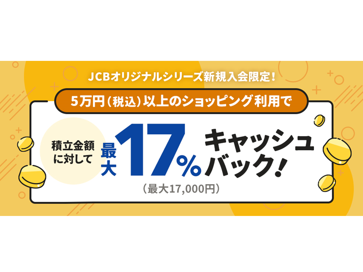 JCBオリジナルシリーズ新規入会者限定!JCBのクレカ積立利用で最大17%(最大17,000円)キャッシュバック