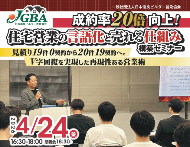 2026年4月24日(金)「成約率20倍向上!住宅営業の言語化と売れる仕組み構築セミナー」開催決定!