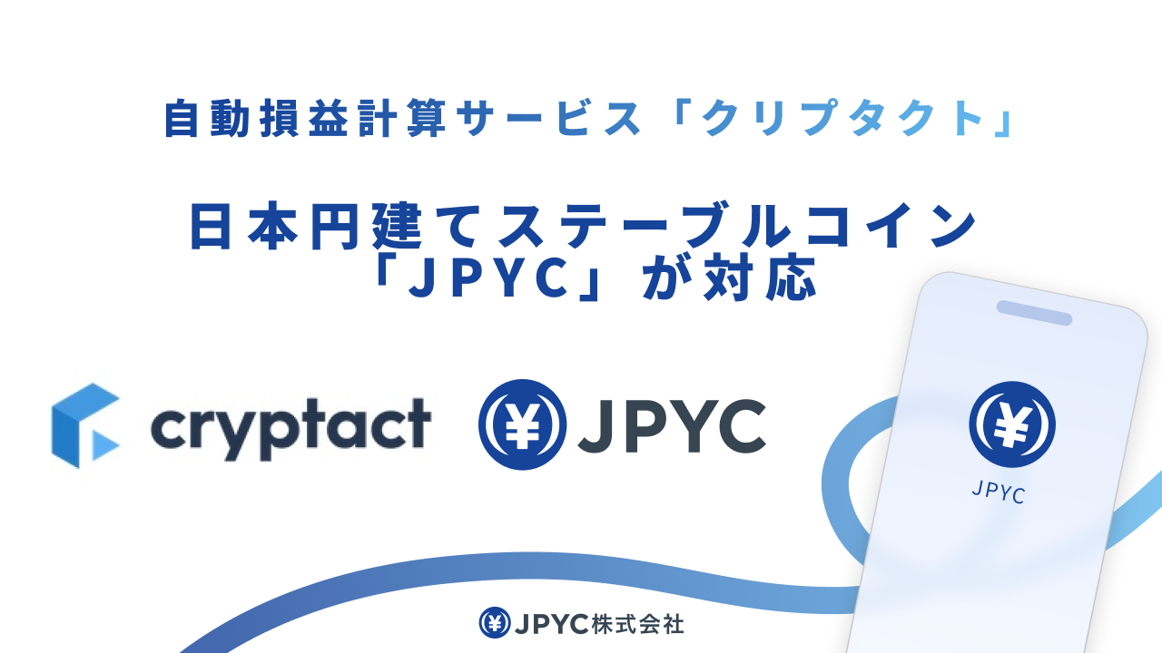 暗号資産の損益計算サービス「クリプタクト」で、日本円建ステーブルコイン「JPYC」の損益計算が可能に