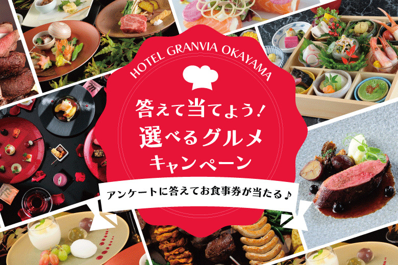 【ホテルグランヴィア岡山】アンケートに答えてお食事券が当たる!「答えて当てよう!選べるグルメキャンペーン」開催