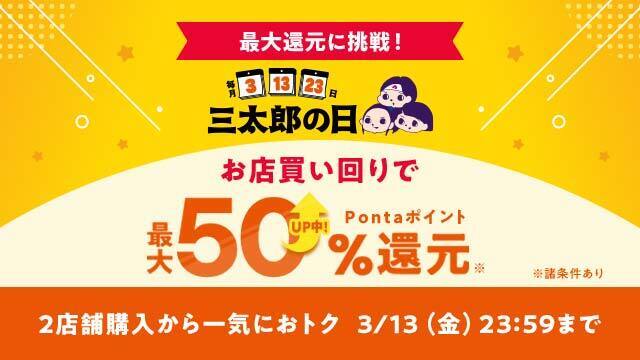【Pontaパス】au PAY マーケット、複数店舗への買い回りで最大50%ポイント還元の「超BIGお買い物ラリー」を3月も開催!~2店舗での購入で5%、6店舗以上の購入で16%還元~(PR TIMES トレンド)