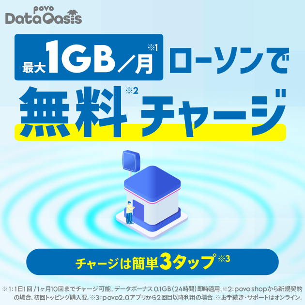 データが無料でもらえる「povo Data Oasis」の利用手順を簡略化、povoアプリから3タップで利用可能に