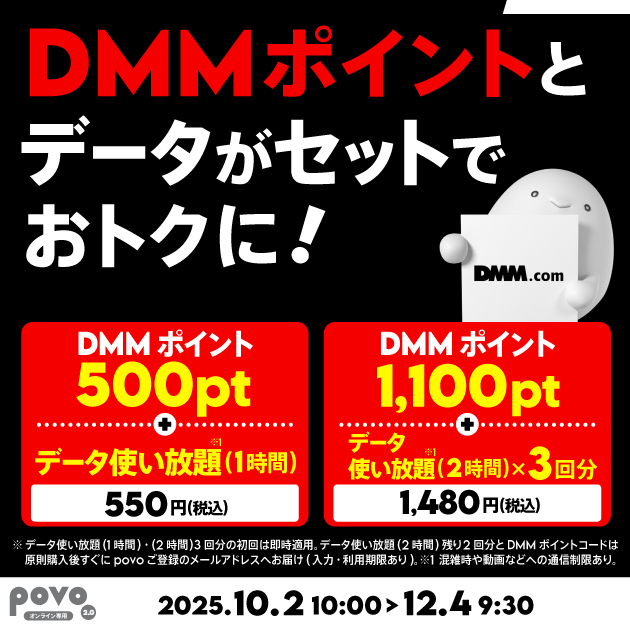 povo、「DMMポイント」とデータがセットになったトッピングを期間限定提供