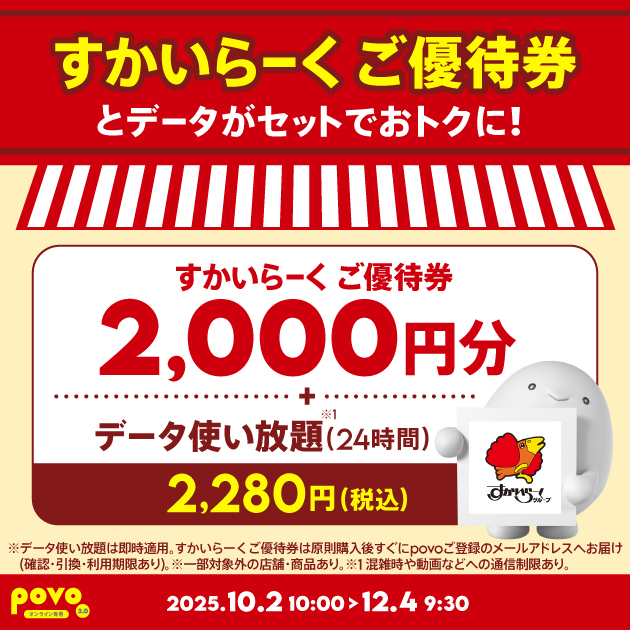 povo、「すかいらーく ご優待券」とデータがセットになったトッピングを期間限定提供