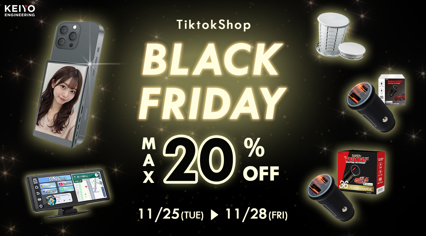 【Tiktok Shop ブラックフライデー開催!】話題の自撮りモニターや駐車位置を探せるカーチャージャー、ディスプレイオーディオなど人気カーアイテムが期間限定でお得に