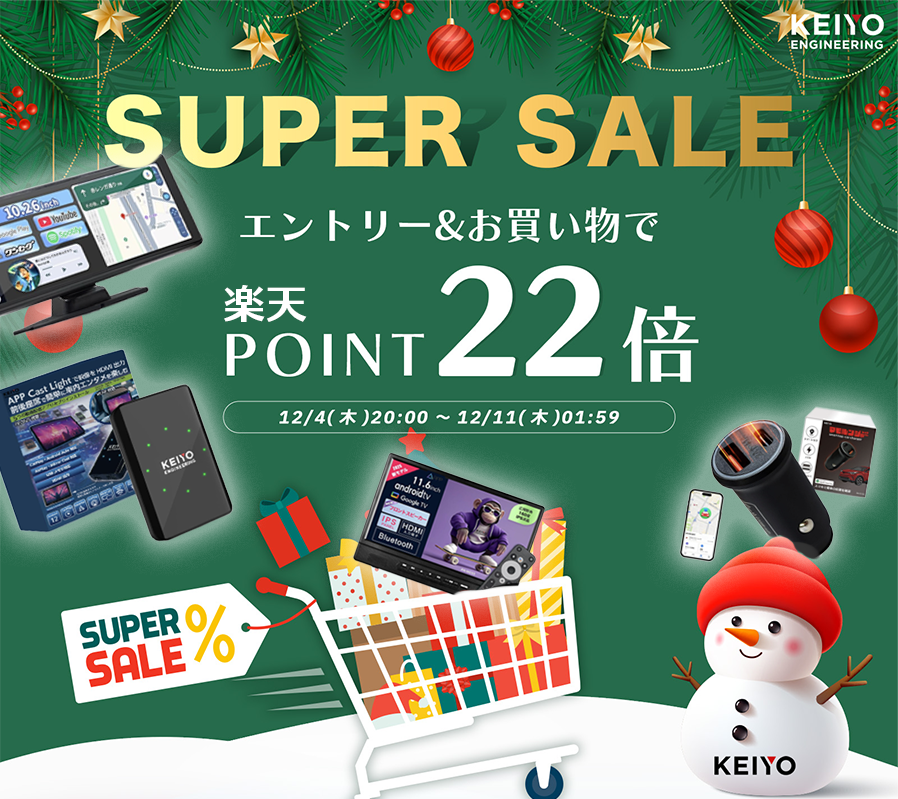 【楽天スーパーセール】ポイント22倍!年末年始のドライブをもっと快適に!APPCASTやリアモニターなど、KEIYOカーエンタメ商品が揃う!家族のお出かけをさらに楽しくするドライブ応援アイテムが充実!