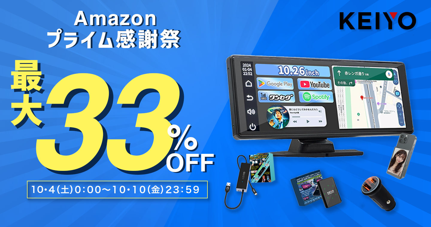 【Amazonプライムデー感謝祭】KEIYOの最新カーグッズや車内エンタメ商品が驚きの価格で登場!人気のディスプレイオーディオやAPPCASTシリーズなどがお得に手に入れるチャンス!