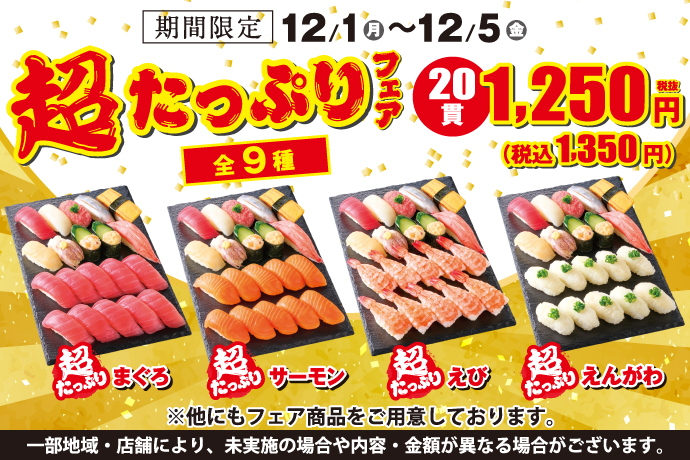 小僧寿しの人気企画!12月1日(月)~『超たっぷりフェア』を開催!期間限定とってもお得なフェアです♪