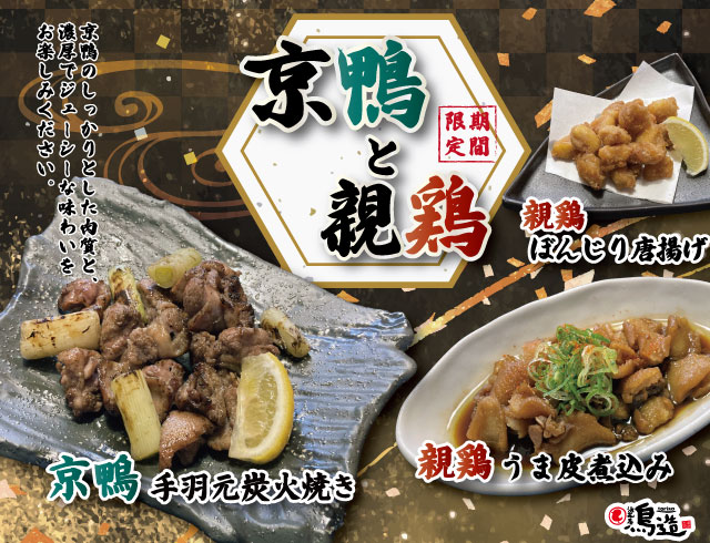 【ぢどり亭】3/9(月)より期間限定メニューの販売を開始します!京鴨と親鶏を存分に味わえる、自慢の料理をお楽しみください♪