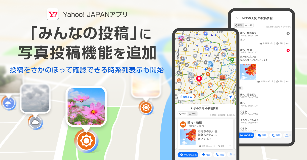 【Yahoo! JAPANアプリ】「雨雲レーダー」上の「みんなの投稿」モードに写真投稿機能を追加
