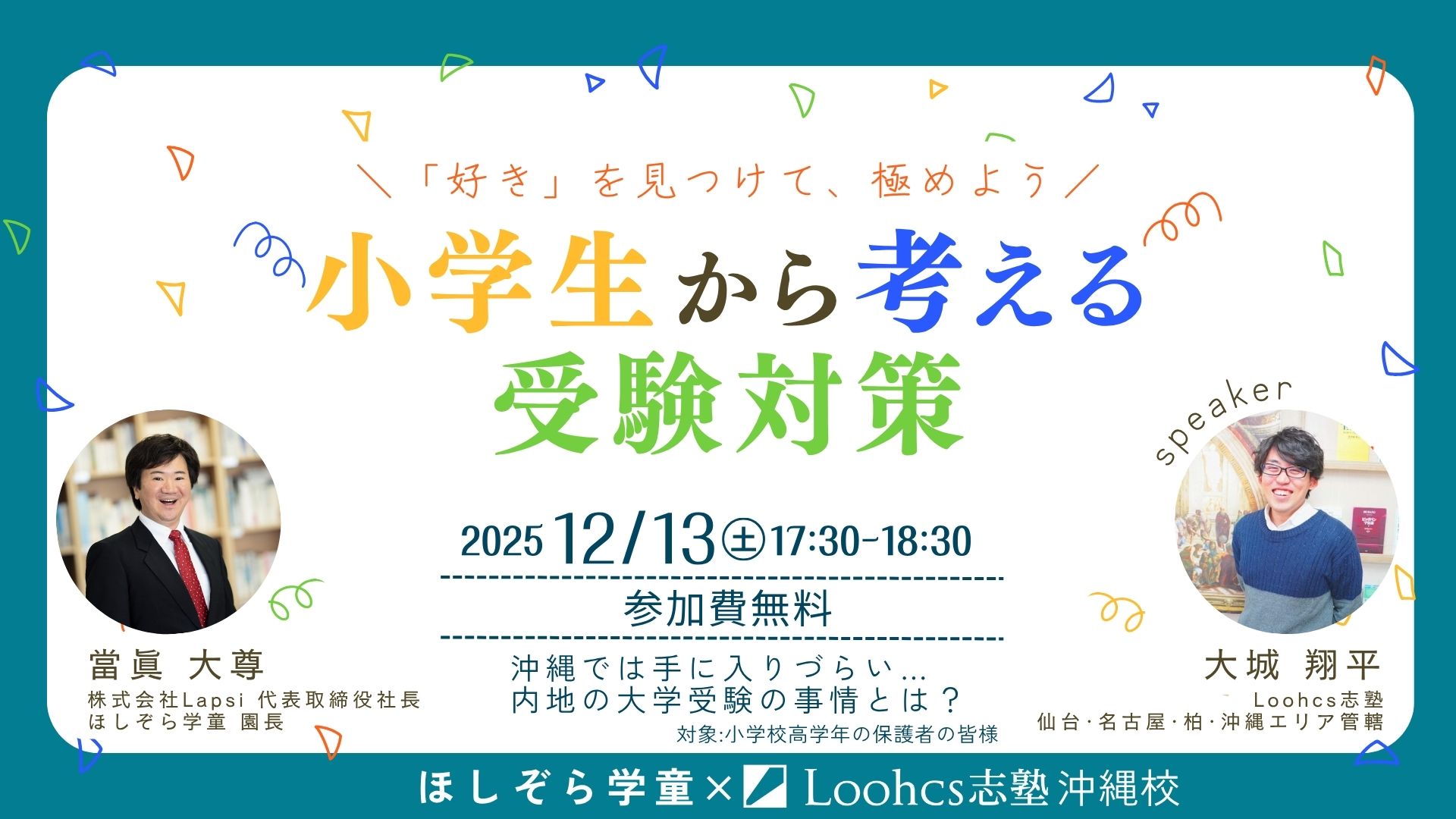 【沖縄・与那原で開催】小学生から「好き」を見つけて、極めよう!--地域の教育現場から考える、“興味関心”を育てる受験対策