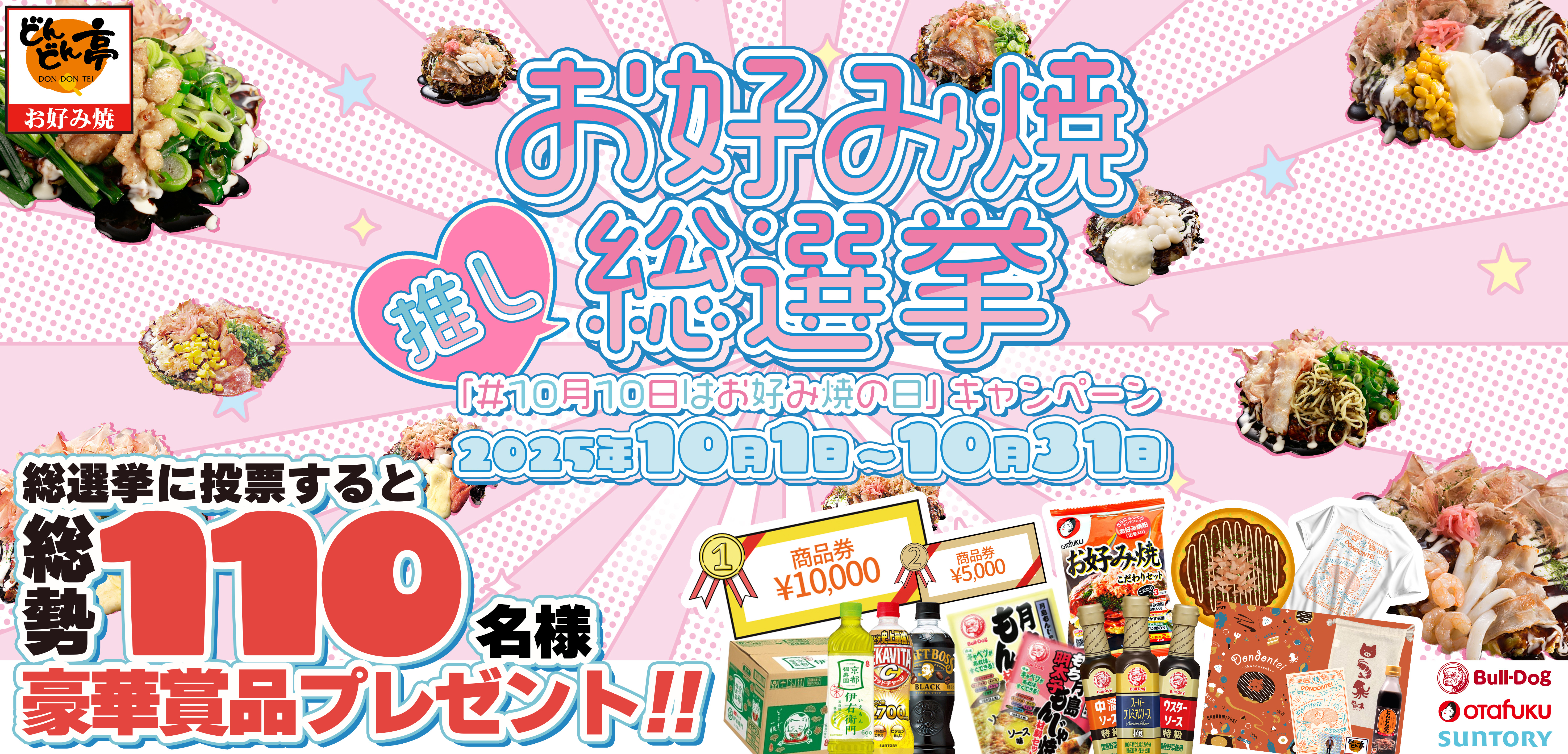 10/1投票開始!<お好み焼専門店どんどん亭>No.1お好み焼を決める【推しお好み焼総選挙】開催!豪華賞品が合計110名様に当たる!