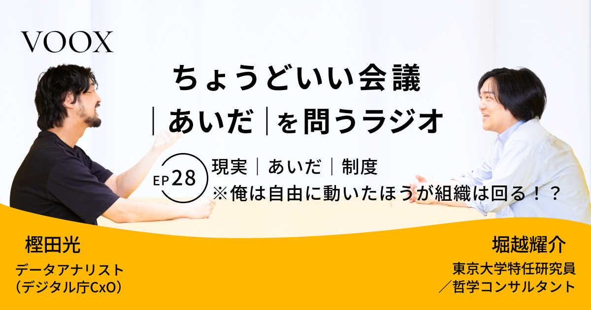 ちょうどいい会議|あいだ|を問うラジオ『Ep28: 現実|あいだ|制度 ※俺は自由に動いたほうが組織は回る!?』音声教養メディアVOOX/Spotifyにて、配信開始!