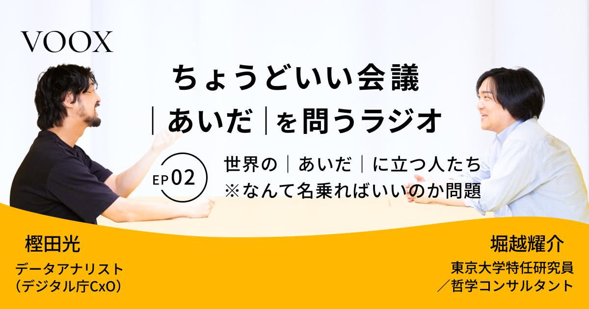 ちょうどいい会議|あいだ|を問うラジオ『Ep.2 世界の|あいだ|に立つ人たち ※なんて名乗ればいいのか問題』音声教養メディアVOOX/Spotifyにて、配信開始!