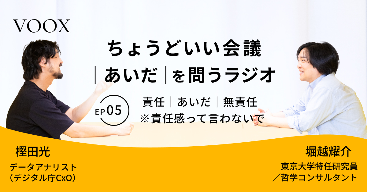 ちょうどいい会議|あいだ|を問うラジオ『Ep5: 責任|あいだ|無責任 ※責任感って言わないで』音声教養メディアVOOX/Spotifyにて、配信開始!