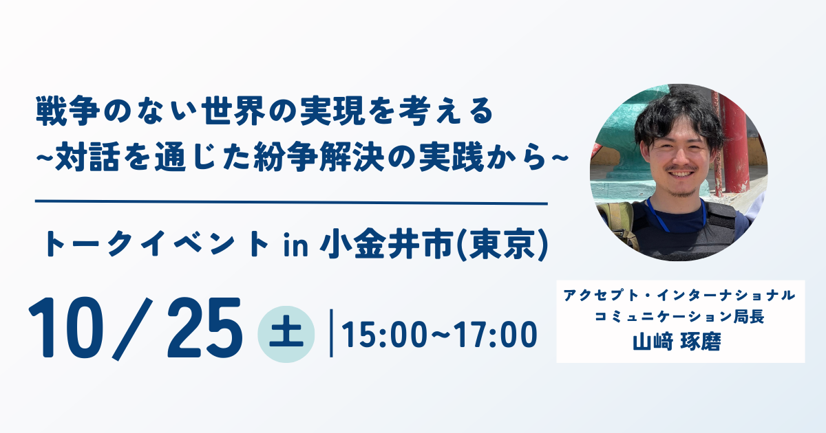 【小金井市で戦争のない世界について考える】アフリカや中東で紛争解決に取り組む日本発のNPOが、対話を通じた平和構築を考えるトークイベントを小金井市の三光院にて開催。