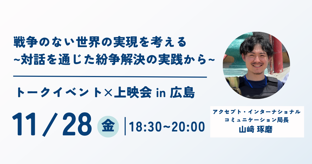【平和都市・広島から世界の紛争地へできること】パレスチナやソマリアで紛争解決に取り組んできた日本のNPOが、現地の実情と平和構築プロセスについて深く語るトークイベント×上映会を11月28日(金)に開催