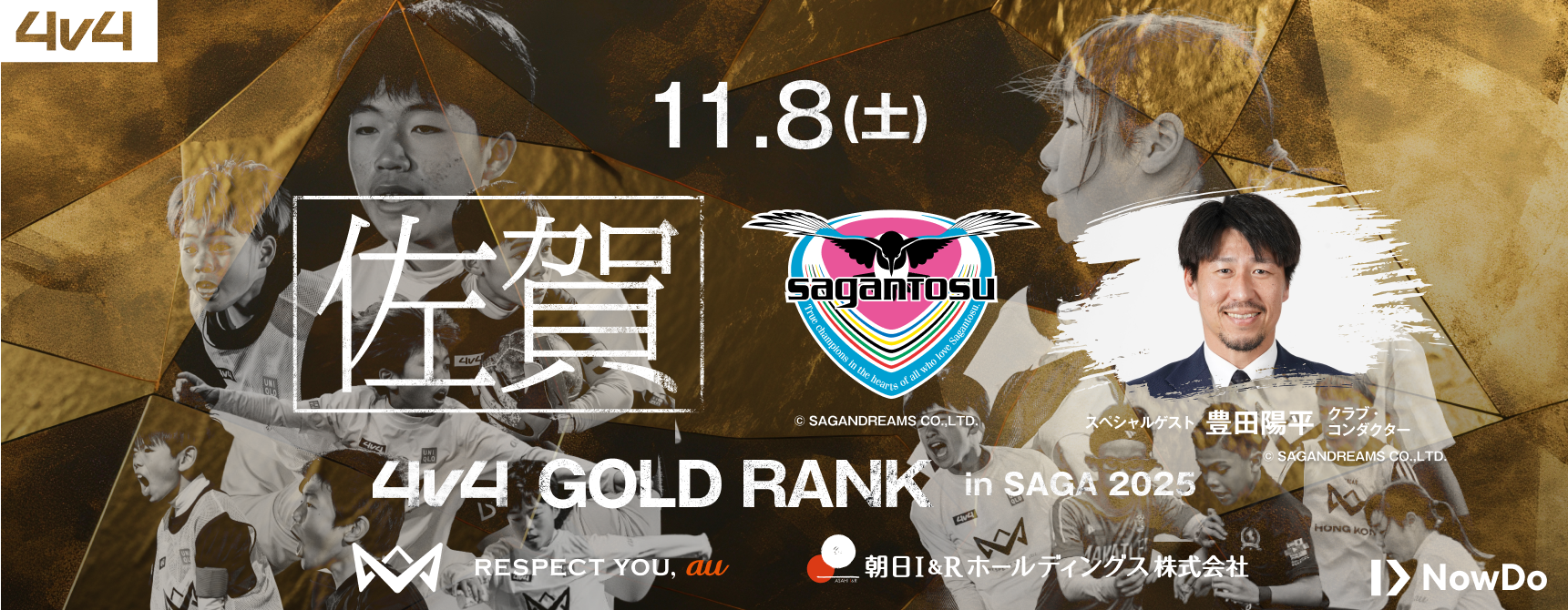 4v4、サガン鳥栖が協力し11月8日(土)佐賀県にてゴールドランク大会の開催が決定。スペシャルゲストには、サガン鳥栖クラブ・コンダクター豊田陽平氏が来場。